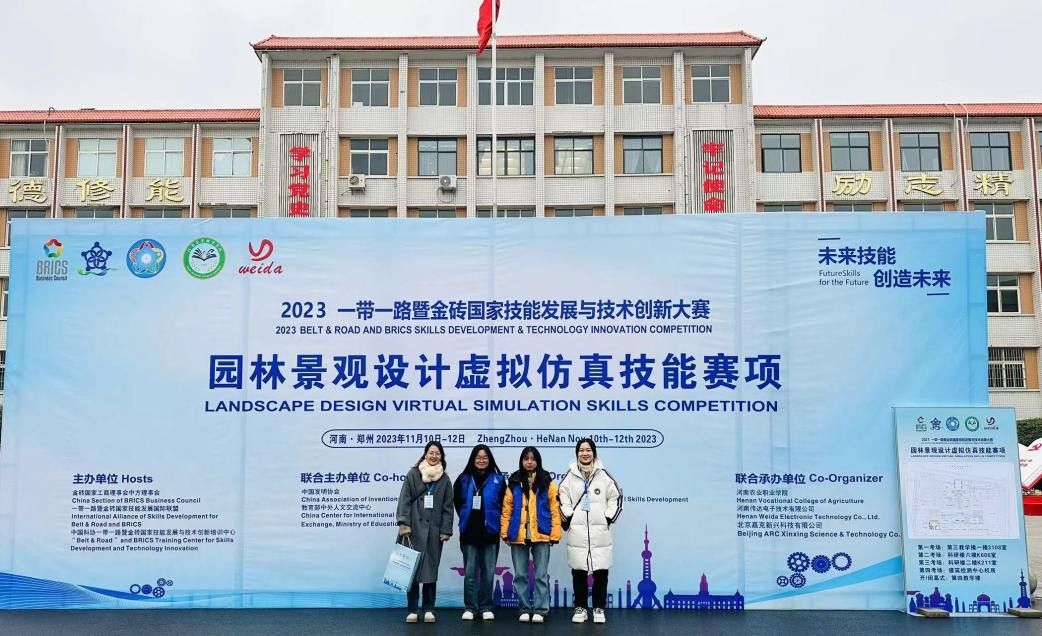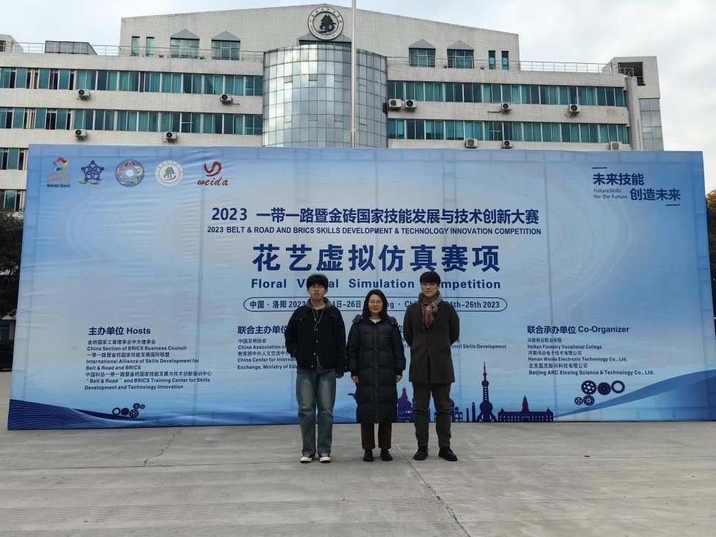 2023年一带一路暨金砖国家技能发展与技术创新大赛11月初已拉开帷幕,吸引了来自全国的优秀选手们共同竞技。在11月10日-12日郑州市举行的园林景观设计虚拟仿真技能赛项中,园林园艺学院崔斯璕、杨倩老师指导的学生曹雯和鲁聪慧展现出了卓越的技能和创新能力,赢得了二等奖荣誉。在11月24-26日洛阳市举行的花艺虚拟仿真赛项中,园林园艺学院夏德美、浦强松老师指导的学生李艺坤、戴煦阳,经过紧张的比赛,凭借出色的表现,成功斩获了该赛项的一等奖。
