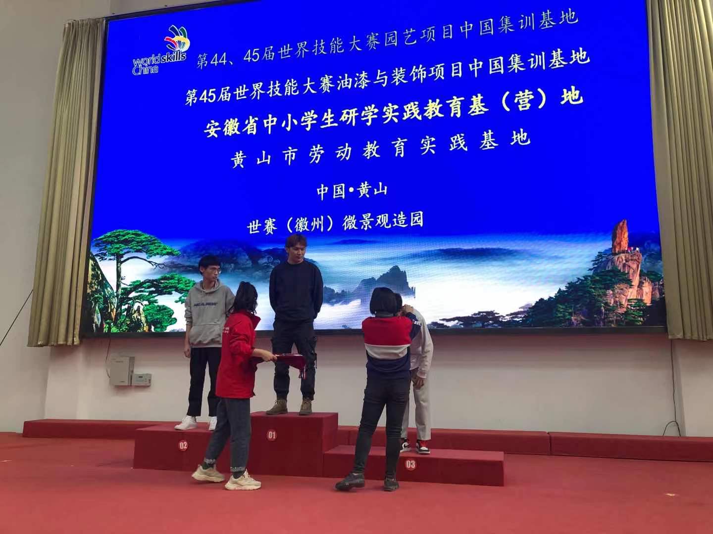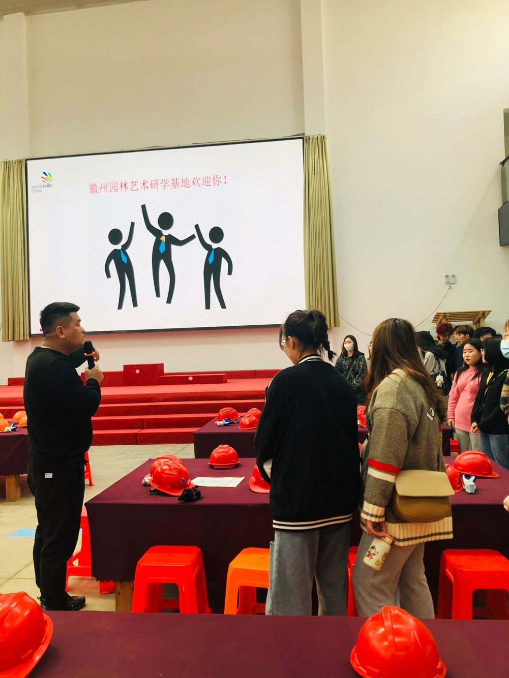 随后,申政带领大家来到实训基地,给同学们介绍第44、45届世界技能大赛园艺项目的赛事情况,并给同学们进行了40分钟的世赛《徽州徽景观造园》的课程讲解。