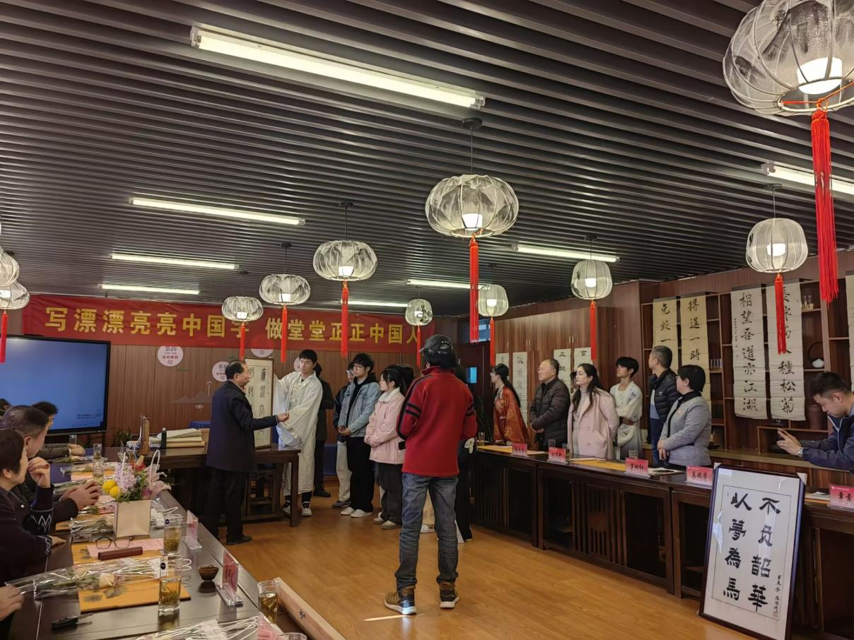 为落实党中央关于加强新时代廉洁文化建设的有关意见,根据学校2023 年廉洁文化主题系列活动安排,12 月 7 日上午,芜湖职业技术学院和安徽省硬笔书法家协会联合举办的“翰墨润英才、书法校园行”文化公益活动座谈会在园林园艺学院五楼茶艺实训室举行。安徽省硬笔书法家协会主席张全民等一行9人,校党委委员、纪委书记罗珊红,纪检监察审计处处长奚晓荣,学校团委书记刘有新及部分教师代表,学校朝阳书画社的学生代表等共30余人参加了座谈会。