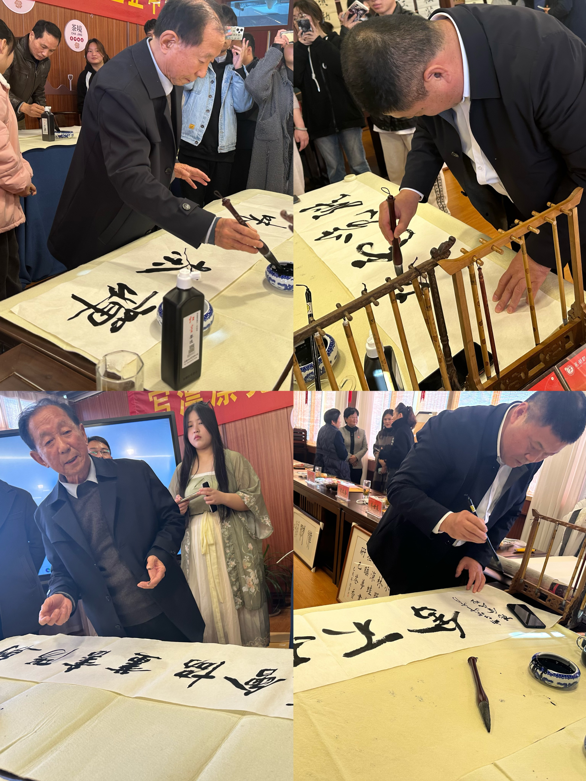 在“写漂漂亮亮中国字,做堂堂正正中国人”的作品点评交流会,各位艺术家老师给同学们介绍了书法的基础知识、历史发展和风格,并详细评析了学校朝阳书画社中学生的作品,让学生们对书法艺术有了更为深刻的认识。说到激情时书法家们挥毫泼墨,他们有的挥洒自如地写着隶书,展现出古朴的韵味;有的行笔稳健,有着独特的敏叡触觉。每一笔墨迹都流露出他们对书法的珍视和敬仰,书法不仅是他们的兴趣爱好,更是他们对美的追求和表达内心情感的方式。