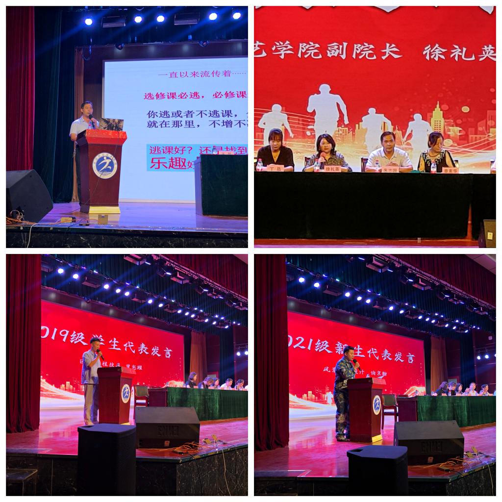 本次活动在庄重的国歌声中正式开始,由副院长徐礼英首先致欢迎词,徐院长全面介绍了学校和学院的基本概况,各专业发展的历史沿革与前景,并就本专业的学习内容、目标和方法,提出了科学的合理化建议。告诫同学们明确学习目标、学用结合、努力成为行业中的行家能手。随后,党总支书记朱志国教授为2021级新生做了总结讲话,并对在座的各位同学提出了希望和要求。他指出,大学既是塑造一个人学识和品质的重要阶段,也是培养一个人兴趣和情智的重要时期,希望大家在大学生涯里,勤于学习、快乐生活、全面发展。