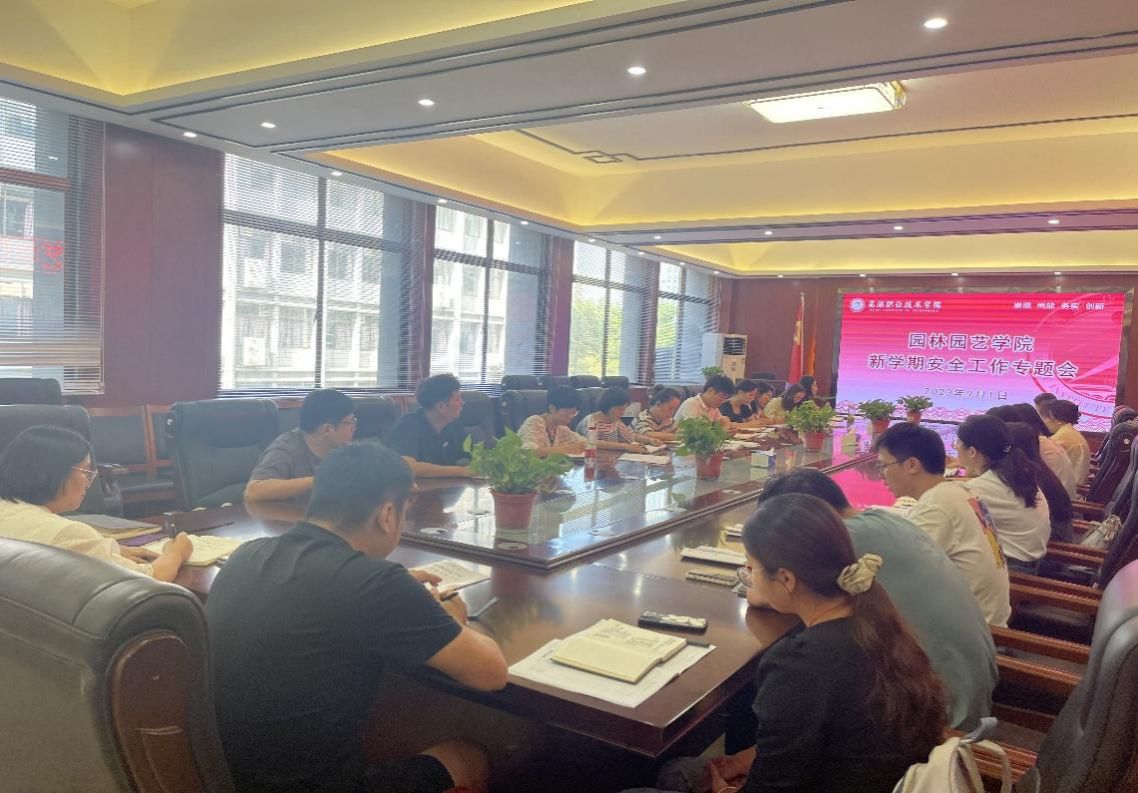 “学校安全无小事,人人重视保平安”,为切实抓好秋季开学各项安全管理工作,构建和谐文明校园,强化安全责任,增强教生的安全意识,筑牢校园安全防线,2023年9月1日下午,园林园艺学院在精实楼二楼会议室召开新学期安全工作专题会议。会议由学院党总支副书记章素华主持,学工科科长王静及全体辅导员、班主任参加。