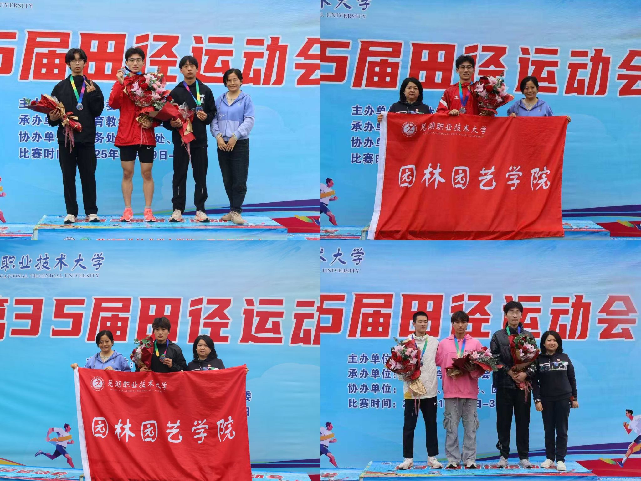 在芜湖职业技术大学第35届运动会上,园林园艺学院的运动健儿们在赛场上团结协作、奋勇拼搏,以坚韧的毅力和出色的表现,荣获团体总分第三名的可喜成绩,同时获得了“优秀组织奖”,展现了园艺学子们昂扬向上的精神风貌。
