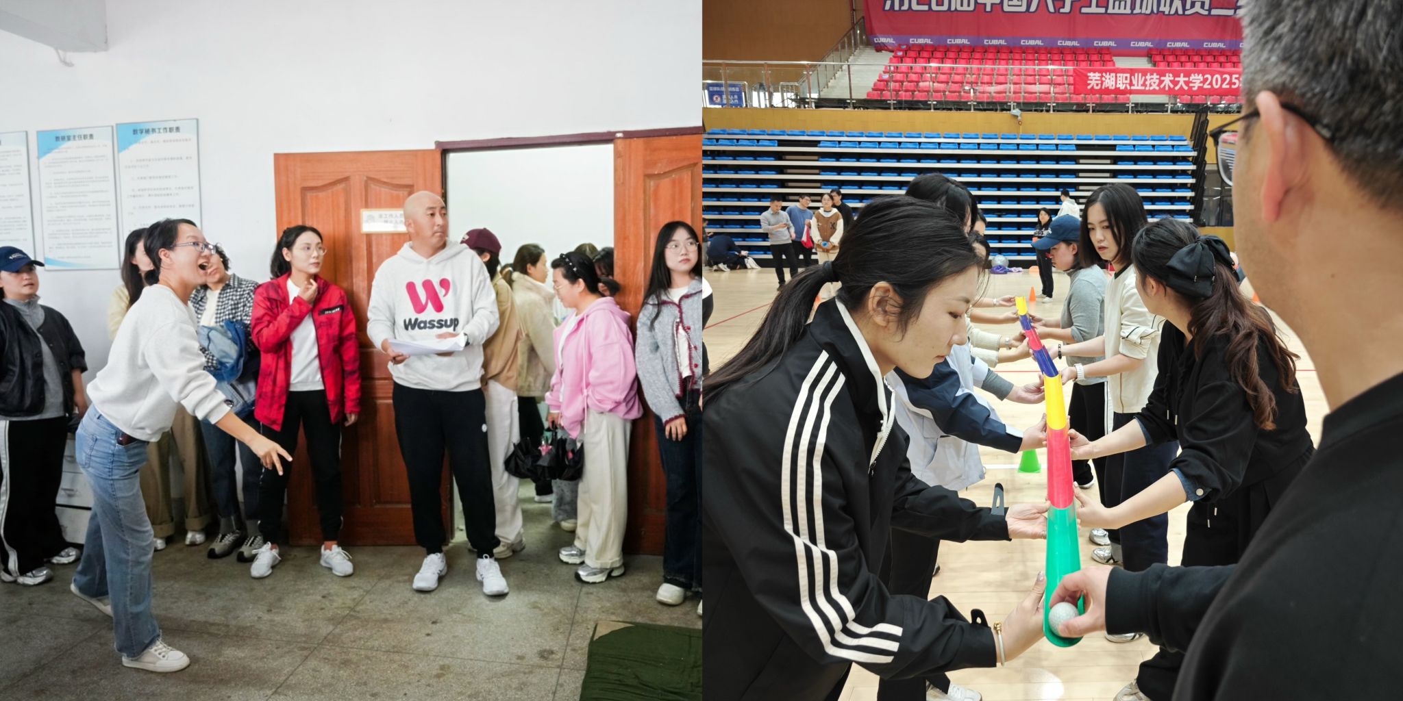 学院教工组的比赛更是精彩,比赛场上,每位教师笑容满面,精力充沛,朝气蓬勃。趣味比赛设有“同心协力”“同心传递”等项目。在比赛过程中教职工们个个全力投入力争第一,赛出了学院集体的凝聚力,勇夺“同心传递”项目第一名。