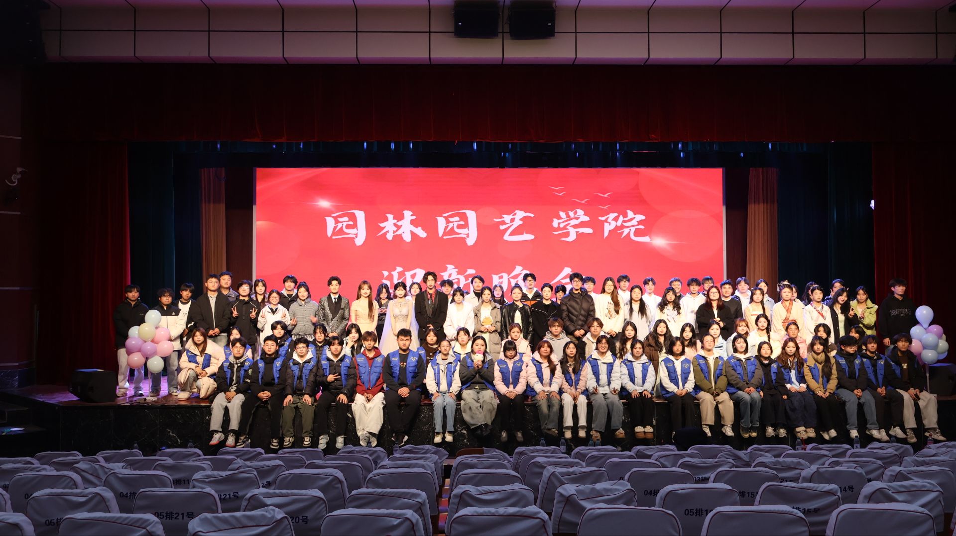 2025年12月4日晚上,园林园艺学院2025届表彰大会暨迎新晚会在芜湖职业技术大学南校区大礼堂隆重举行。园林园艺学院党总支副书记章素华、王静,副院长徐礼英及全体辅导员、班主任老师齐聚一堂,与2025级新生共同观看了这场充满暖意与欢乐的晚会。