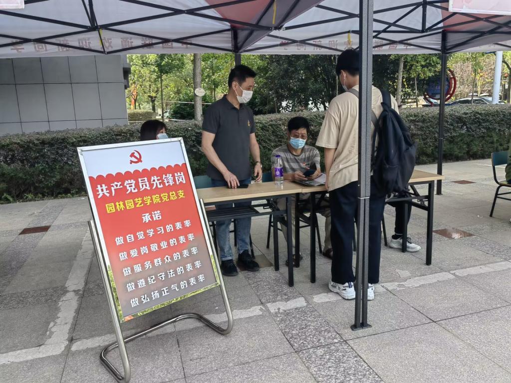 离离暑云散,袅袅凉风起;书声渐入耳,初秋学子来。2022年9月12日至13日,芜湖职业技术学院喜迎2022届新生。为充分发挥党员先锋模范带头作用,进一步提高党员服务意识,园林园艺学院党总支将“双联双应”工作与迎新工作相结合,设置了“共产党员先锋岗”,组织开展“党员迎新生,服务我先行”主题志愿服务活动,在志愿服务中践行初心使命、体现责任担当,助力学院迎新工作顺利开展,推动新时代基层党建“双联双应”工作扎实开展。