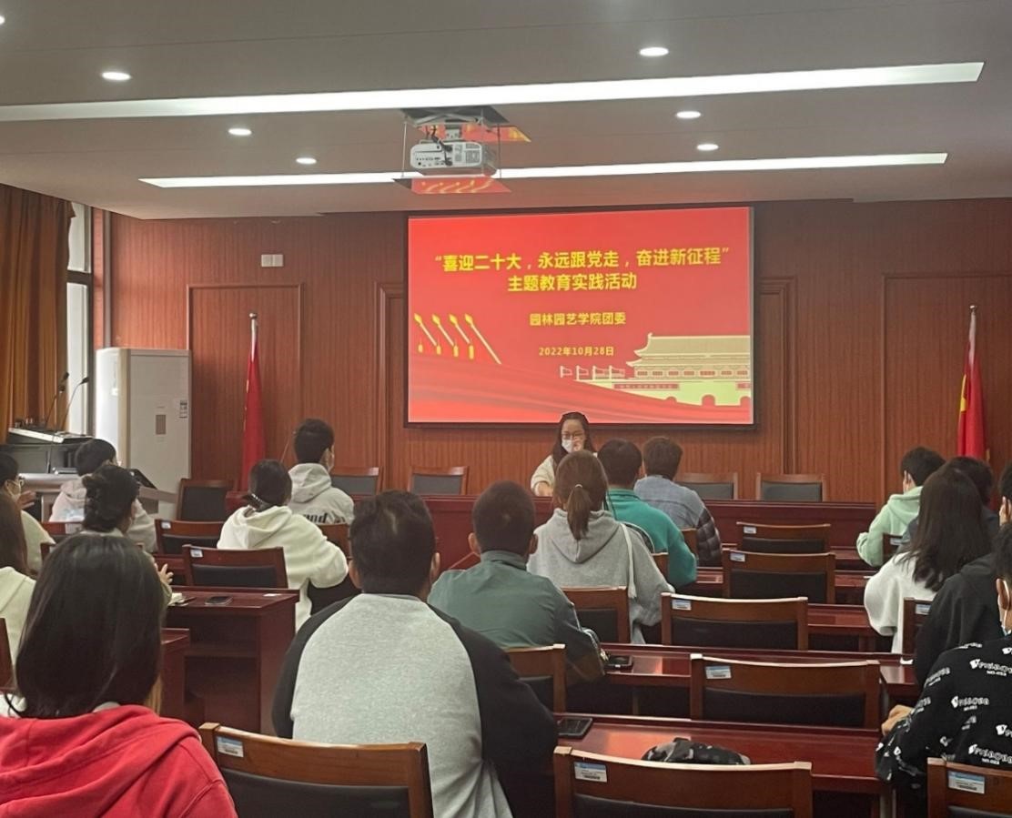 10月28日,园林园艺学院在学院精实楼多功能报告厅召开了关于“喜迎二十大,永远跟党走,奋进新程”的主题教育实践活动,以带领学生深入学习贯彻党的二十大精神。活动由园林园艺学院团委书记王静老师组织开展,园林园艺学院全体团支部书记参加。