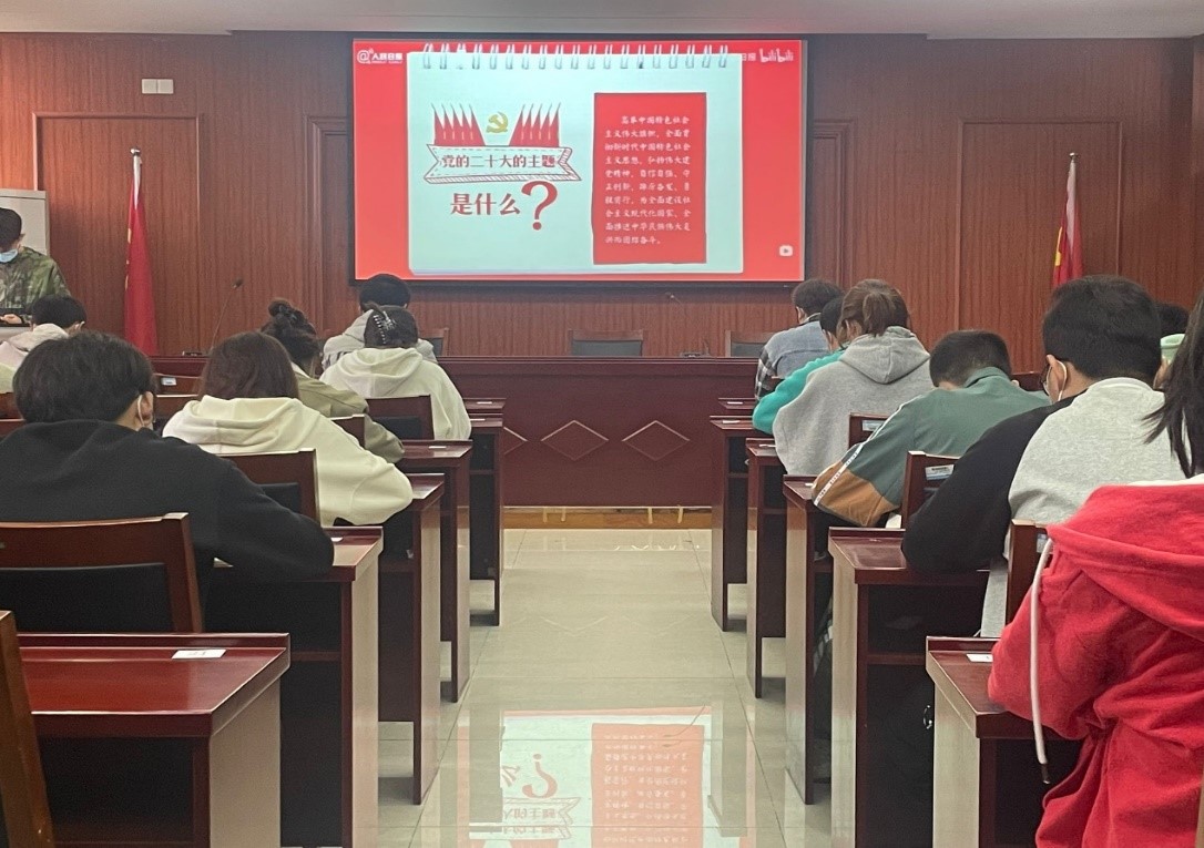 会上,王静老师带领大家系统了解了中国共产党第二十次全国代表大会的主要内容,以深入学习党的二十大精神,通过提问与讨论的形式与学生们一同探究党的二十大的主题。王静老师指出,党的二十大报告主题鲜明、内涵丰富、思想深邃、视野宏阔,充分体现了全党意志、反映了全体人民心声,通篇闪耀着马克思主义真理光芒,是全党全国各族人民奋进新征程、实现第二个百年奋斗目标的政治宣言和行动指南,同样也将是学院未来的行动纲领。