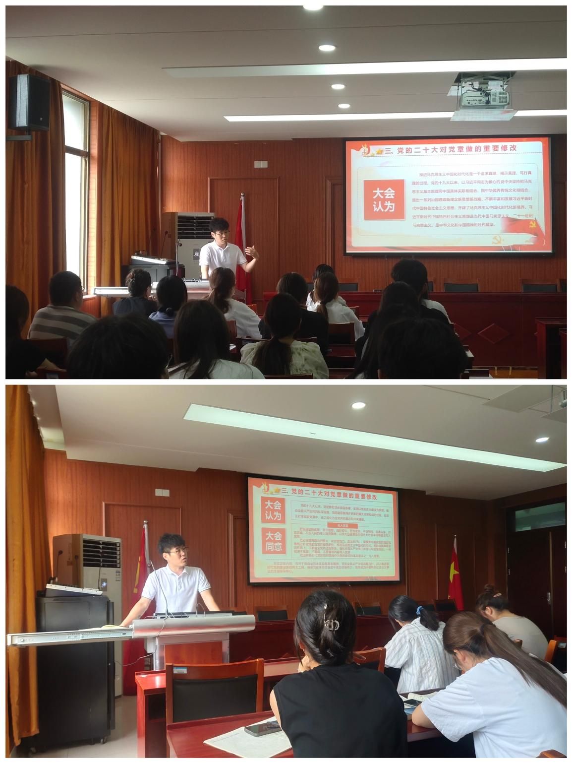课上,王恺着重分析了党的二十大对党章做的重要修改,包括党章总纲、党员权利义务、党的基层组织、党的干部、党的纪律、党的纪律检察机关、党组等多个方面。