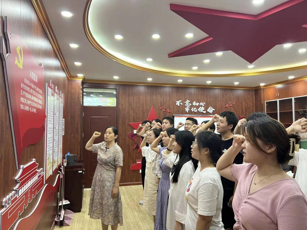党课结束后,章素华带领全体毕业生党员向党旗宣誓。全体毕业生党员面对鲜红的党旗,庄严地举起右手,重温入党誓词。坚定有力的誓言,使每一位毕业生党员又一次接受了深刻的党性教育和灵魂洗礼,激励他们不忘初心、牢记使命。