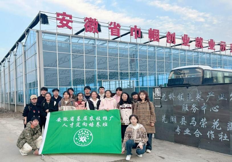 安徽省基层农技推广定向班是为解决安徽省基层农业技术人才短缺窘境,加快推进乡村产业振兴和人才振兴的重要举措,到企业开展实践研学活动是学院基层农技推广定向班人才培养模式中重要环节,是园林园艺学院深化校企合作,增强学生爱农情怀的重要途径。此次进企业研学活动,拓宽了同学们的眼界,增长了同学们的知识,让同学们更加明确目标、坚定投身基层,建设美好乡村的信念,为成为服务“三农”的新时代基层农技推广人才打下坚实基础。(文/王静、黄千姿 图/丁晶、闫子微 审/章素华)