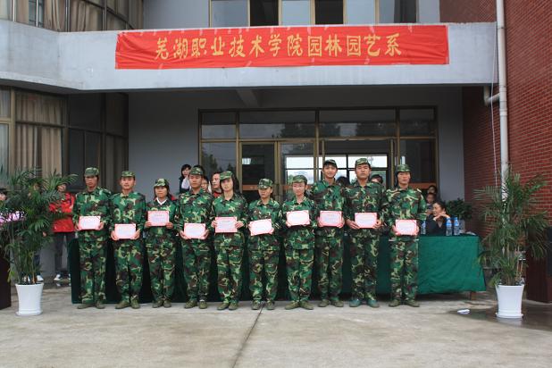 本次会操充分展现了同学们搏击困难的信心和勇气,展现了自己战胜困难的意志和能力,展现了新一代园林园艺系学子良好的精神风貌。经过评比,园林工程技术10-34班和环境艺术设计10班荣获一等奖,其他班分别获得二、三等奖;41名同学被评为优秀学员。系领导为获奖班级和优秀学员颁发了奖状和荣誉证书,同时为6名教官赠送了鲜花和纪念品,感谢教官们的严格训练和辛勤工作。