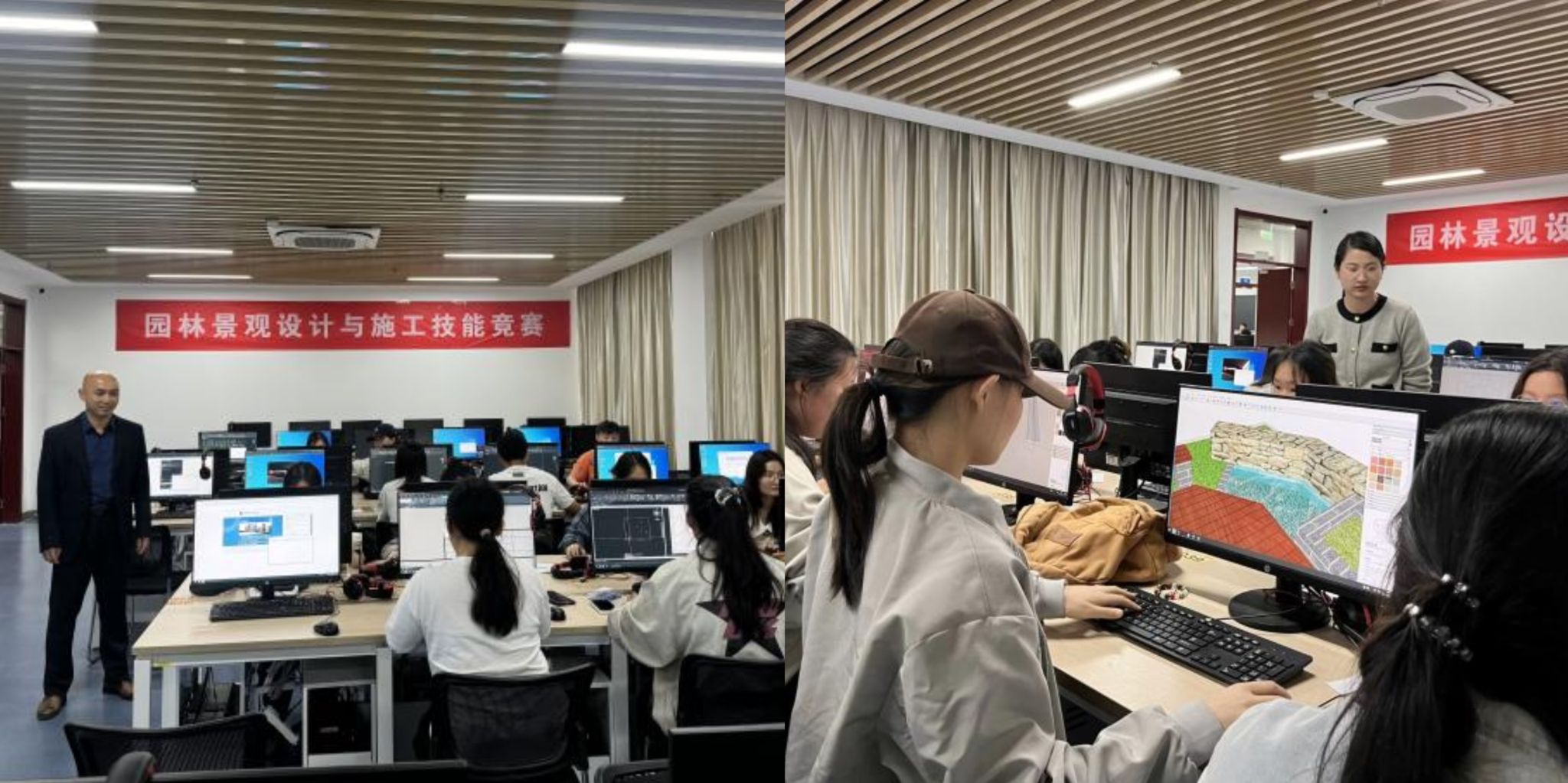 在两次比赛中,芜湖职业技术学院教务处对比赛过程进行了严格的监督与检查,比赛中,分别安排专门老师作为监督员对比赛进行了全程监管,并为“园林景观设计与施工项目”协调了信息与人工智能学院机房作为比赛场地。