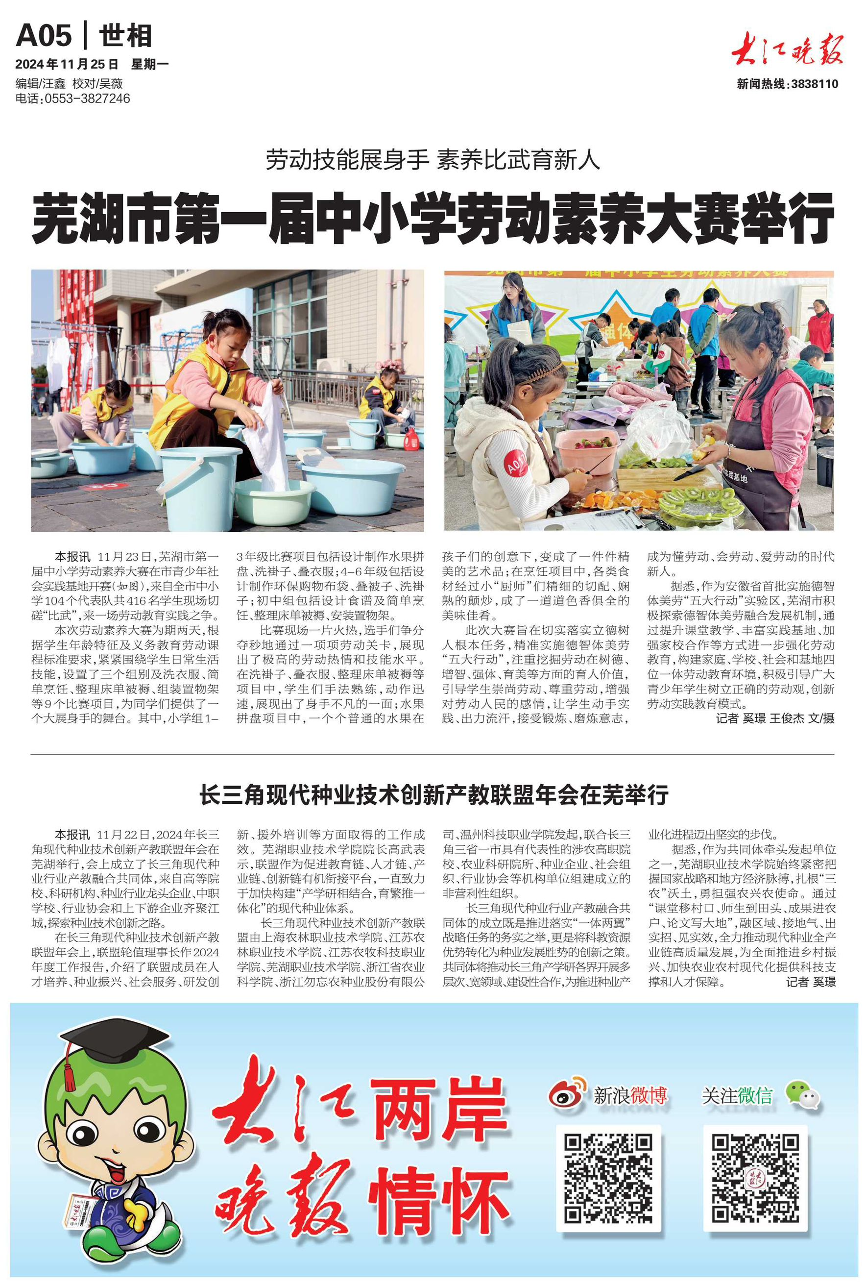 据悉,作为共同体牵头发起单位之一,芜湖职业技术学院始终紧密把握国家战略和地方经济脉搏,扎根“三农”沃土,勇担强农兴农使命。通过“课堂移村口、师生到田头、成果进农户、论文写大地”,融区域、接地气、出实招、见实效,全力推动现代种业全产业链高质量发展,为全面推进乡村振兴、加快农业农村现代化提供科技支撑和人才保障。(大江晚报记者 奚璟)