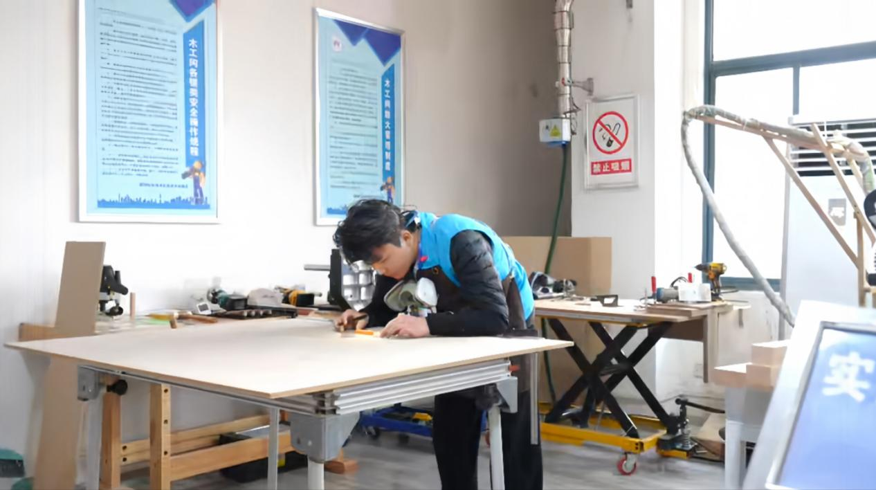 金佳明同学在2024年安徽省职业院校技能大赛“精细木工”赛项中进行图纸绘制