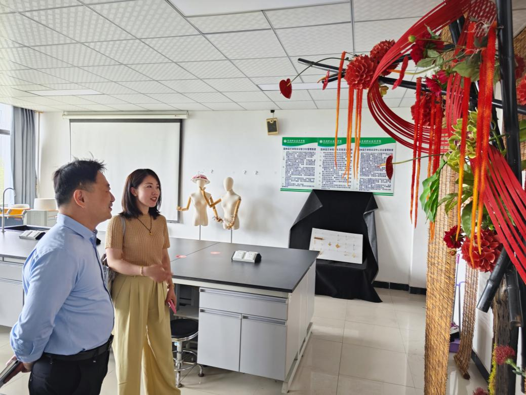 交流结束后,芜湖莘沃文化传媒有限公司总经理方媛一行参观了茶艺室、植物组织培养实验室、花艺设计与制作实训室和乡村振兴规划设计中心等实训场所。