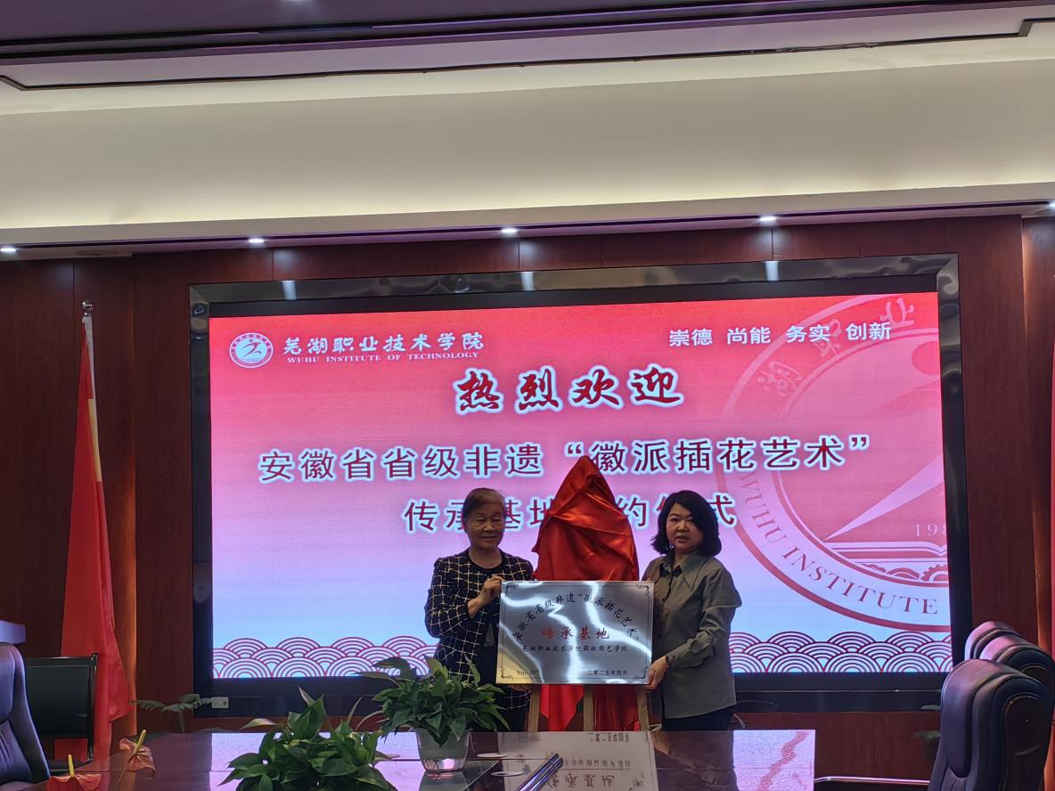 2025 年 4 月 21 日上午,省级非遗项目 “徽派插花艺术” 传承基地授牌仪式在芜湖职业技术学院园林园艺学院会议室举行,标志着徽派插花这一古老技艺正式扎根高校,开启活态传承的新篇章。