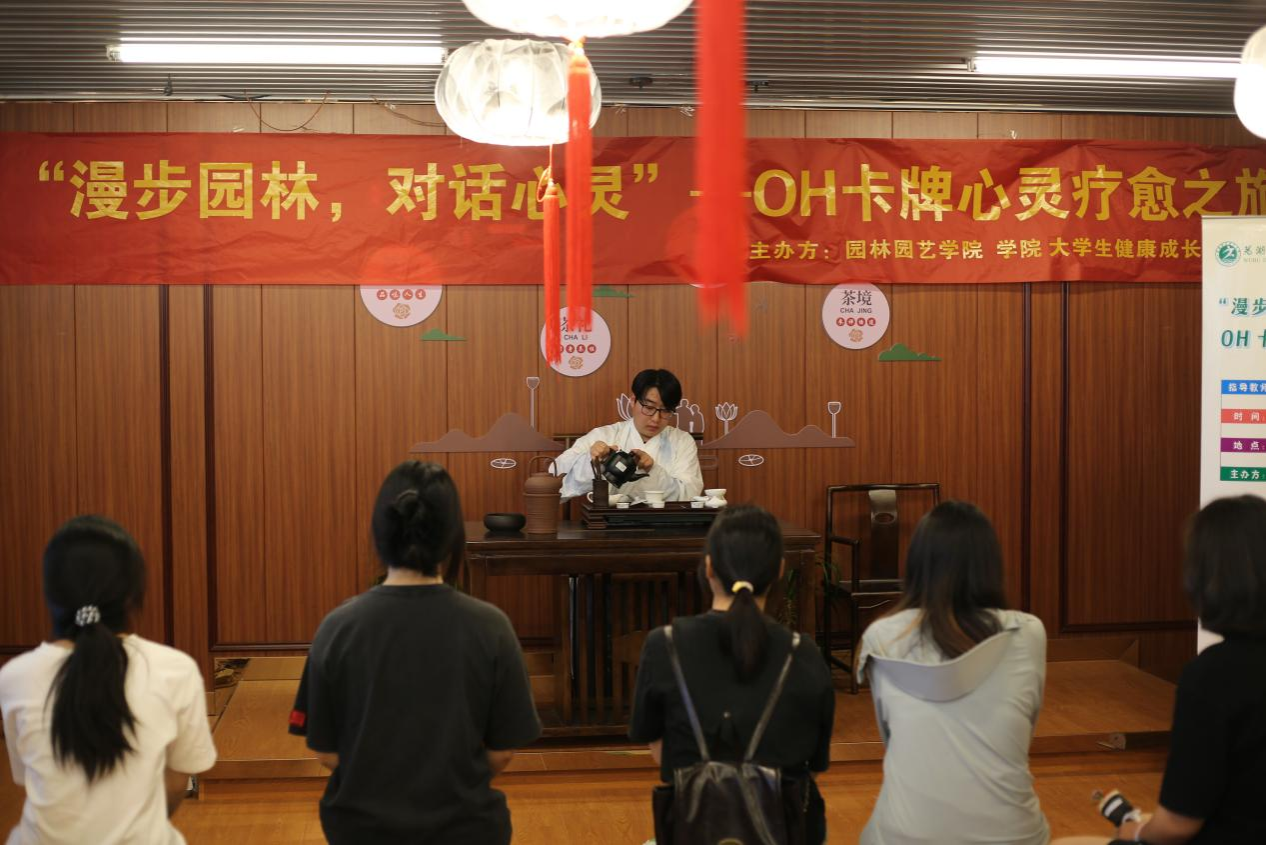 5月14日,园林园艺学院开展525大学生心理健康月系列活动——“漫步园林·对话心灵”OH卡牌心灵疗愈之旅,本次活动由注册心理咨询师吕莹老师带领,吸引来自各个学院的同学参加。