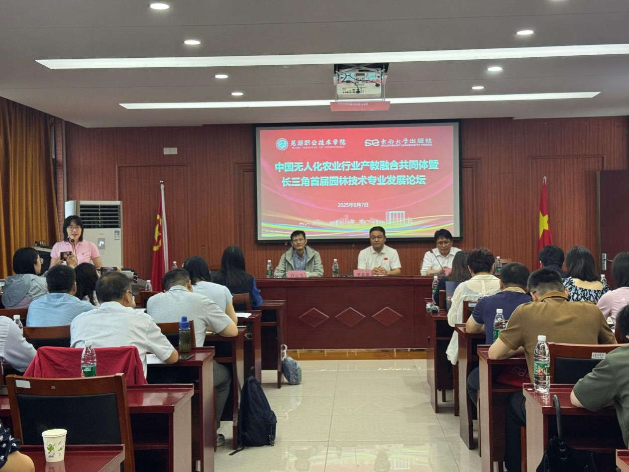 在国家大力推进职业教育产教融合、加快农业现代化发展的战略背景下,中国无人化农业行业产教融合共同体暨长三角首届园林技术专业发展论坛于6月7日在芜湖职业技术学院园林园艺学院举行。来自南京林业大学、东南大学出版社以及安徽省10所开设园林技术专业的高校代表齐聚一堂,共同擘画园林技术专业发展新蓝图。本次会议围绕园林技术专业建设、数字化教学改革等核心议题展开深入交流,为推动长三角地区园林技术专业高质量发展凝聚智慧与力量。