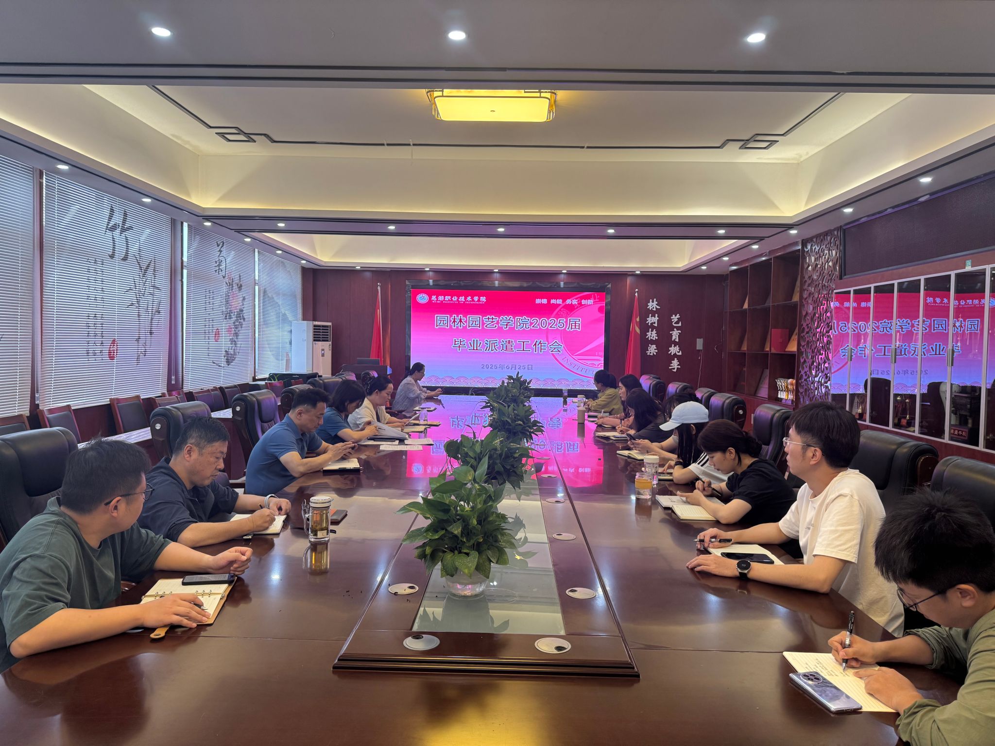 5月25日下午,园林园艺学院2025届毕业生派遣工作会议在精实楼二楼会议室召开,会议由学院党总支副书记章素华主持,院党政领导班子、各教研室主任及全院辅导员、班主任参加会议。