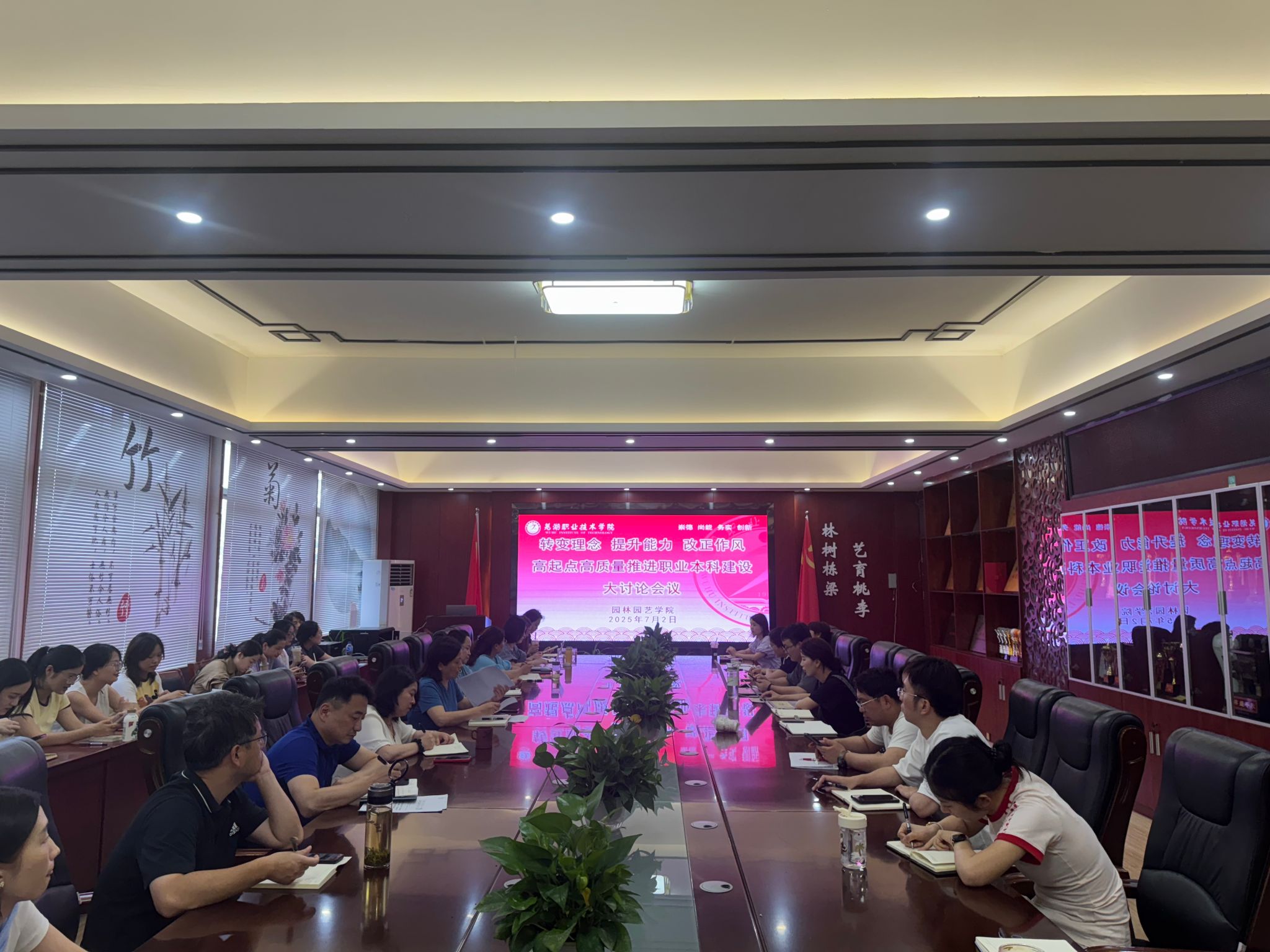 2025年7月2日,园林园艺学院召开“转变理念 提升能力 改变作风 高起点高质量推进职业本科建设”大讨论会议。会议由学院党总支副书记章素华主持,全院教职工参加。本次大讨论会议旨在以本科层次“芜湖职业技术大学”成功创建为起点,统一思想、凝聚共识、明确方向、理清思路,奠定坚实的本科办学基础。