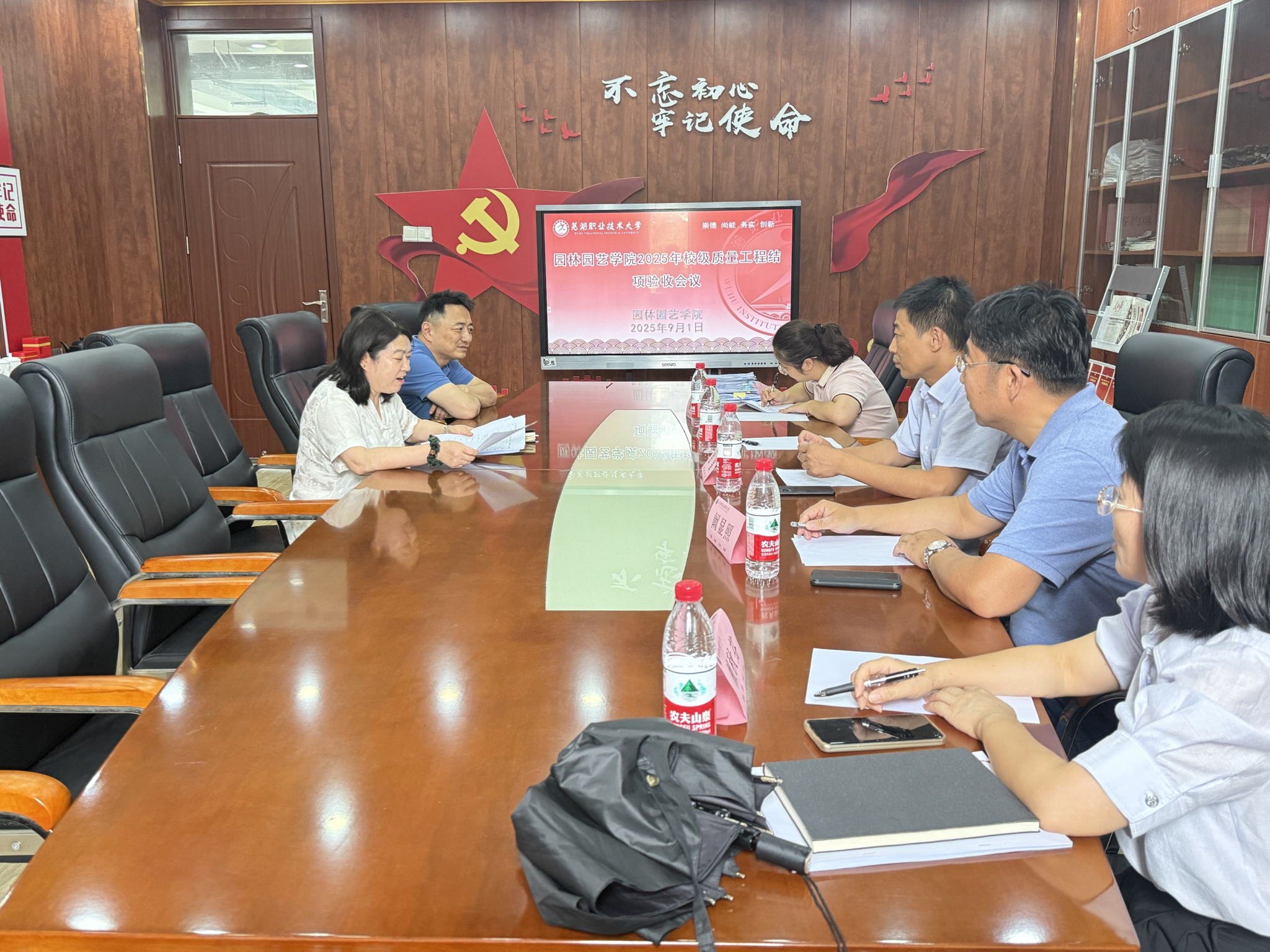 9月1日下午,芜湖职业技术大学园林园艺学院在精实楼2001会议室召开2025年校级教学质量与教学改革工程项目结题验收评审会。会议邀请校外专家安徽师范大学阚显照教授,校内专家张强教授、李超教授、檀秋芬副教授、俞荟副教授共同组成专家评审组,对学院9个校级“教学质量与教学改革工程”项目进行集中结题验收。