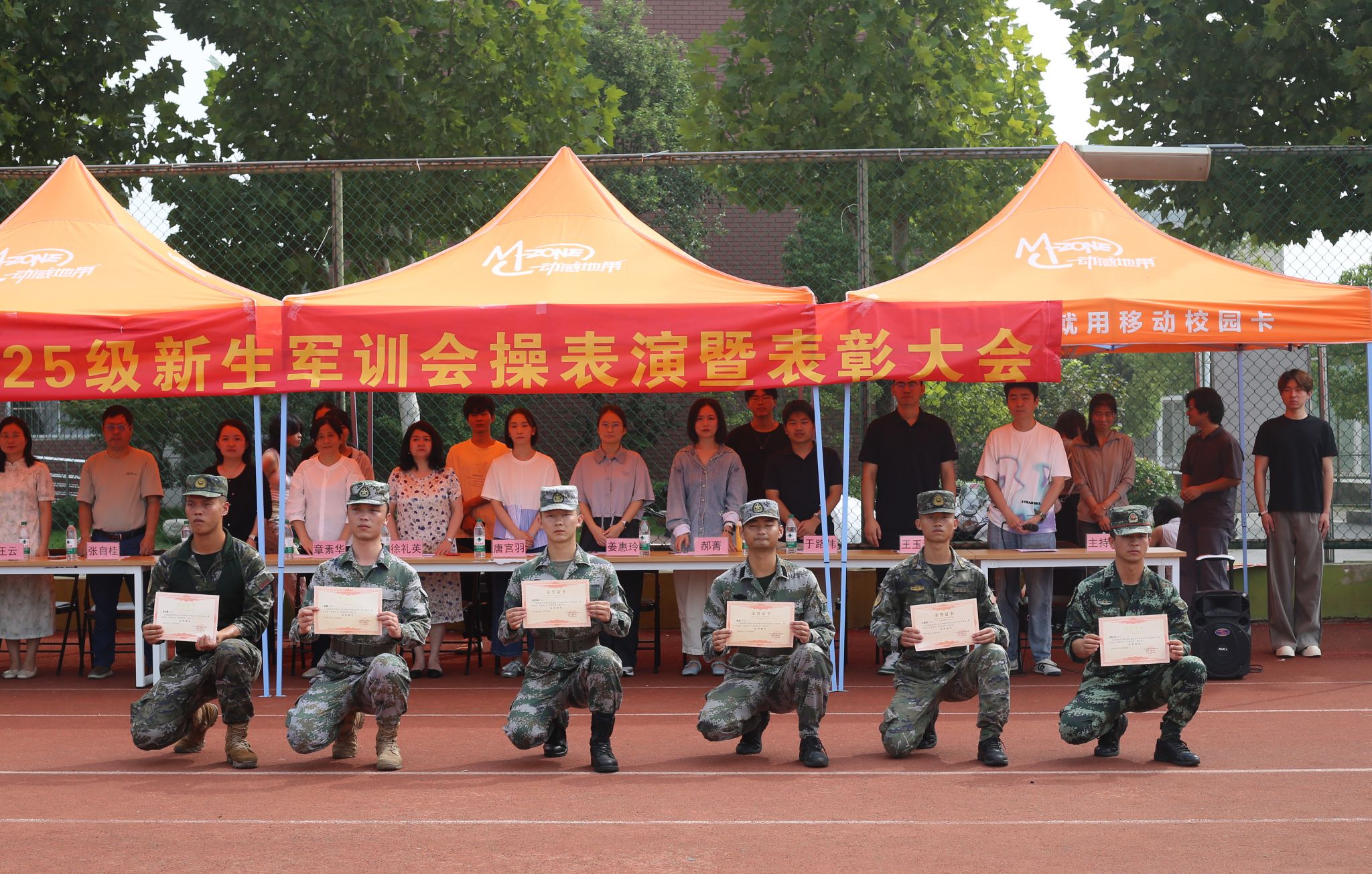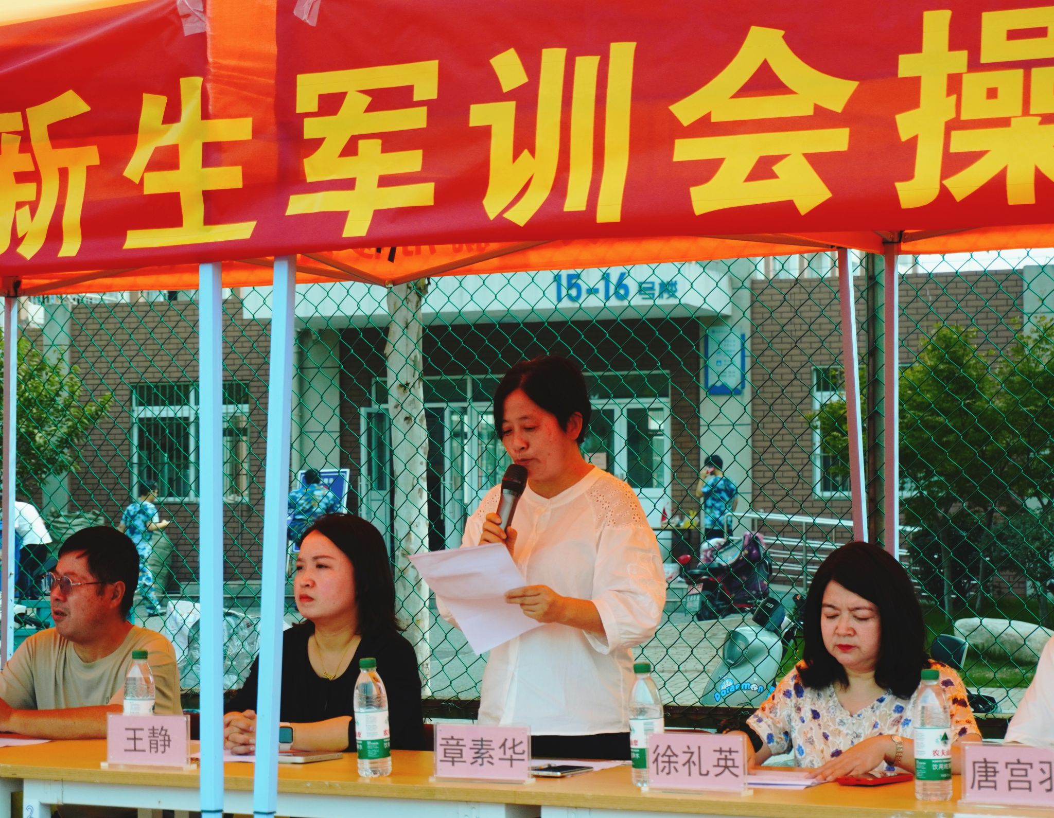 会操结束后,学院领导公布“优秀学员”、“优秀教官”和“先进集体”表彰名单,并为获奖个人及集体现场颁奖。学院党总支副书记章素华发表总结讲话,她首先向辛勤付出的教官、大一辅导员、班主任、班助等表示衷心感谢,对新生们在军训中展现的顽强毅力与优良作风给予充分肯定。章素华勉励全体新生,要将军训中锤炼的吃苦耐劳、团结协作精神融入今后的学习生活,以“成于园,立于艺”的专业追求砥砺前行,在芜职大书写青春华章。