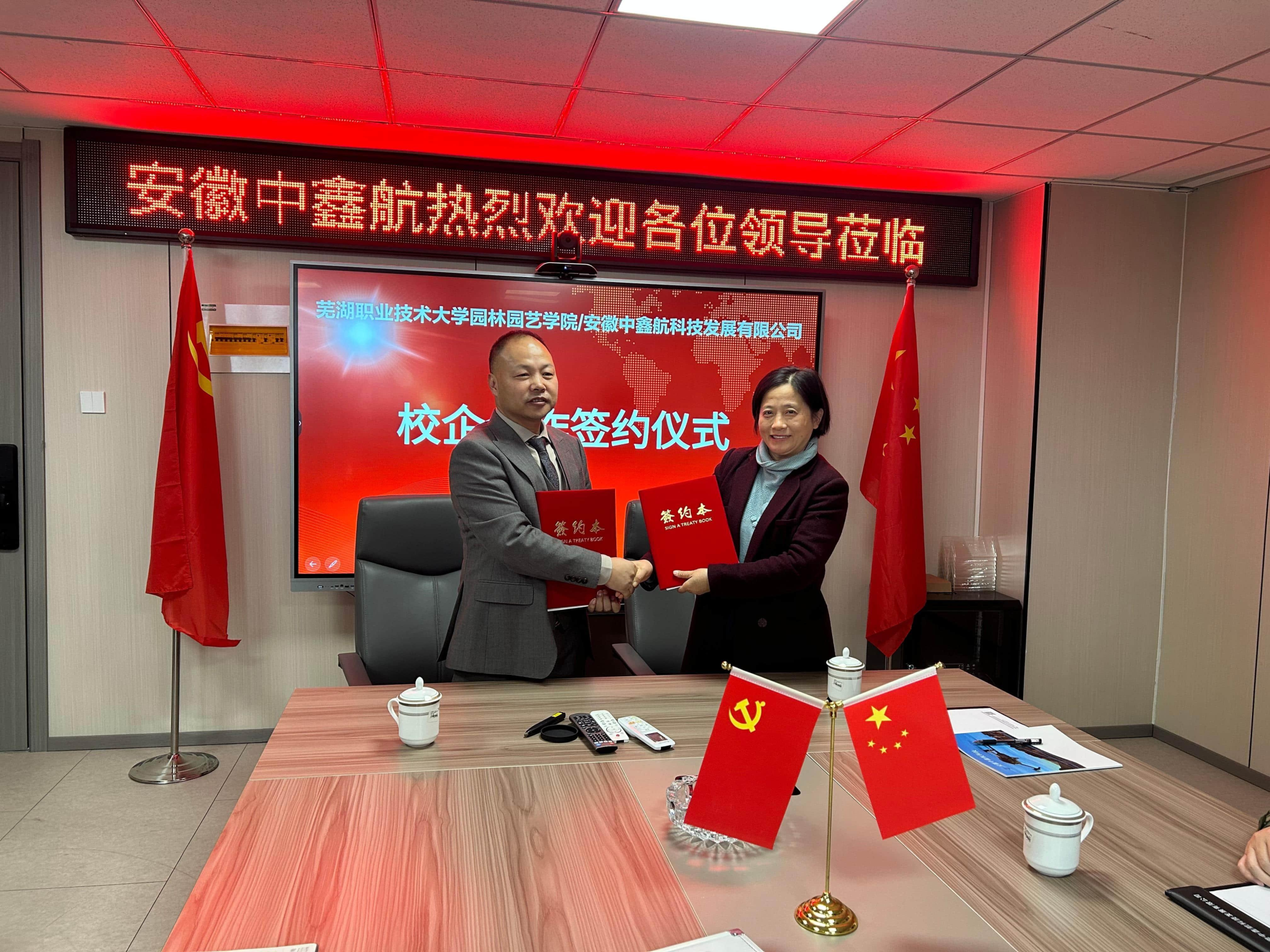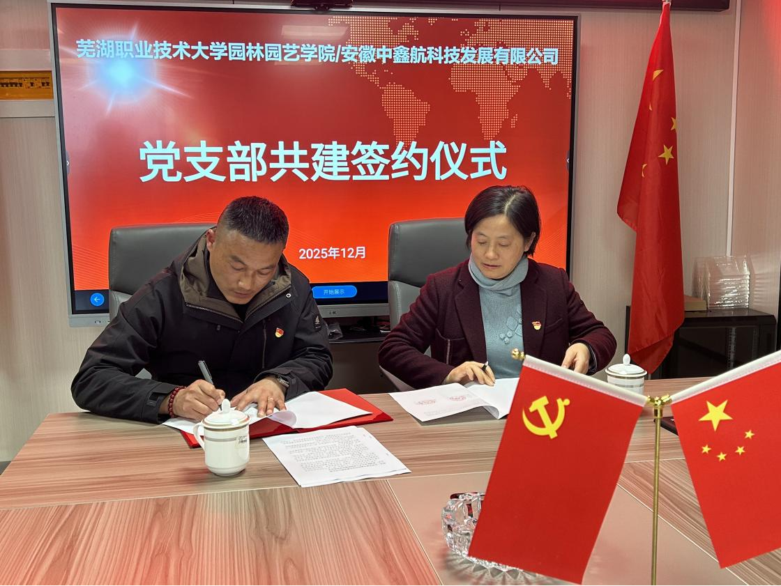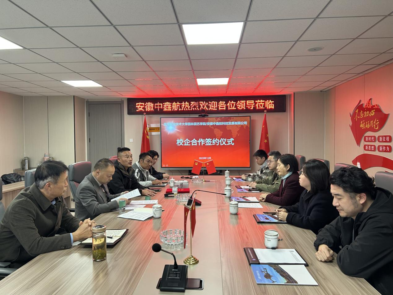 为深入贯彻落实国家产教融合发展战略,以高质量党建引领教育教学与企业发展深度融合,12月2日,园林园艺学院与安徽中鑫航科技发展有限公司签订校企合作协议和党建共建协议。安徽中鑫航科技发展有限公司董事长王大东、总经理陶尚国,园林园艺学院党总支副书记章素华、王静,园林工程技术教研室主任闻治江、安徽省技术能手浦强松,辅导员晏涛参加签约仪式。