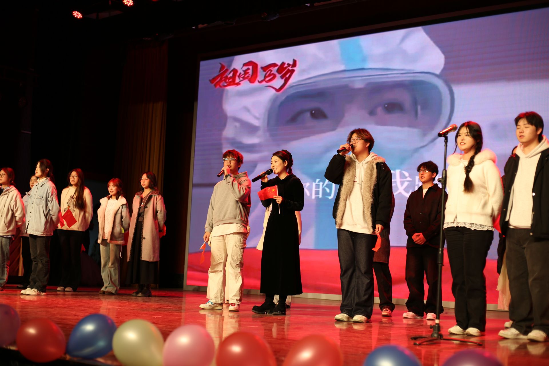 欢乐的时光在同学们的欢声笑语中悄然滑过,不知不觉间,晚会已接近尾声,谢楠老师带领同学合唱《如愿》,寄托着对家国盛世的赞颂,用饱含感情歌声传递着对新同学的欢迎。悠扬的歌声伴着余温未散的情谊与欢笑,为这个难忘的校园之夜圆满收尾。