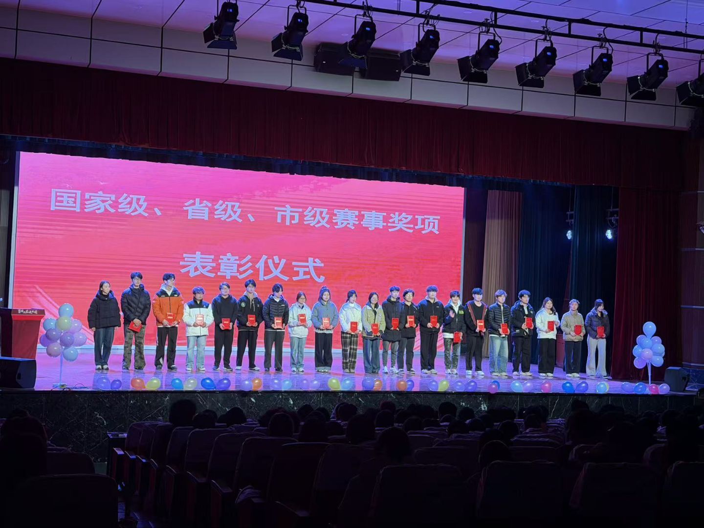 2025年12月4日晚上,园林园艺学院2025届表彰大会暨迎新晚会在芜湖职业技术大学南校区大礼堂隆重举行。园林园艺学院党总支副书记章素华、王静,副院长徐礼英及全体辅导员、班主任老师齐聚一堂,与2025级新生共同观看了这场充满暖意与欢乐的晚会。