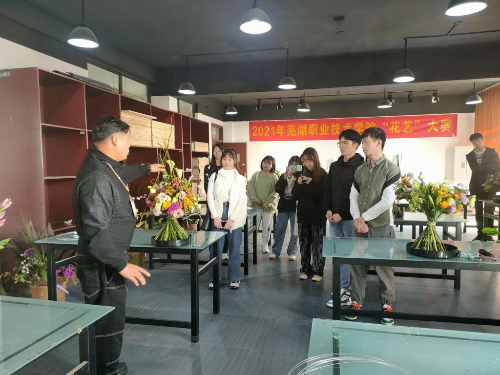 10月23日,由园林园艺学院承办的芜湖职业技术学院技能大赛“花艺”项目竞赛在园林园艺学院系楼——精实楼举行,全校共13位同学参加了此次比赛。此次比赛邀请了安徽师范大学涂传林教授、安徽省插花协会周丰老师、宏胜花艺工作室谢宏胜老师等专家担任评委,学院党总支书记朱志国、副书记章素华、副院长徐礼英、学工科长王静、辅导员老师伍卉、夏德美等老师负责现场工作,十多名青年志愿者们在现场提供后勤服务工作。