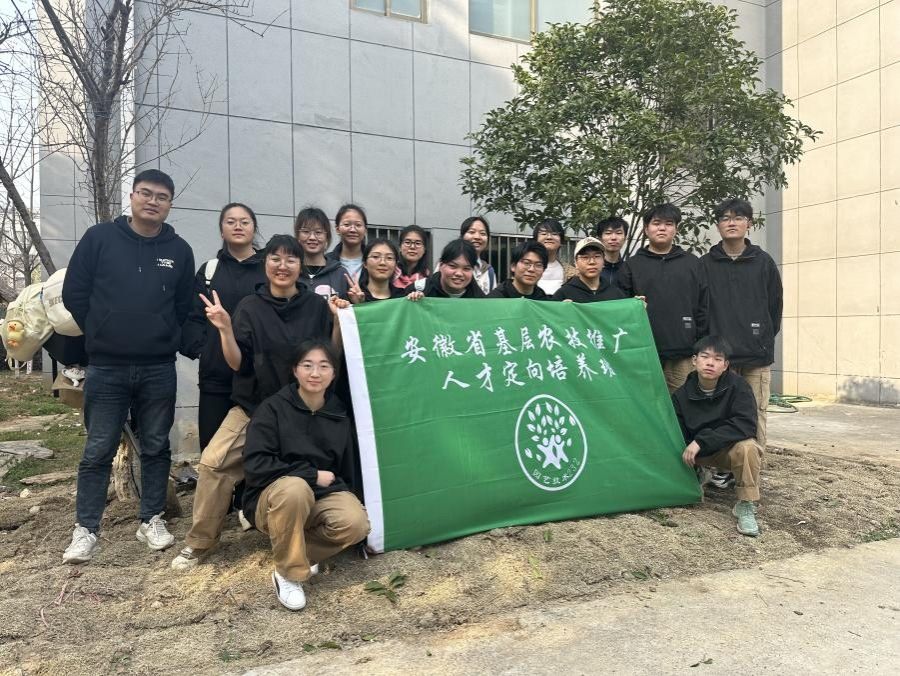 一缕春风动,万物欣向荣,“植”此新绿之际,3月12日植树节,学院统一组织安排,园林园艺学院安徽省基层农技推广定向班同学在辅导员王静老师、专业课王雷老师的带领下,在精实楼东南角进行班树种植活动。