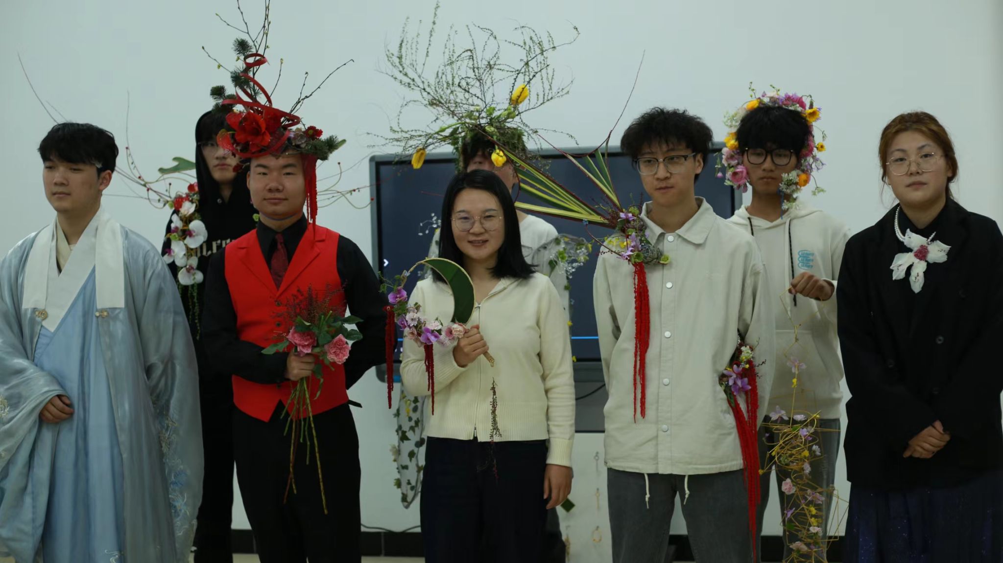 到了展示环节,同学们展现出极高的热情,积极主动参与其中,佩戴花饰,完成现场走秀。本次活动打破了同学们对插花的原有认知,懂得插花是一种艺术形式,不仅能让人充分感受花艺的独特魅力,更能提高自身的审美情趣,激发了同学们对专业学习的兴趣。