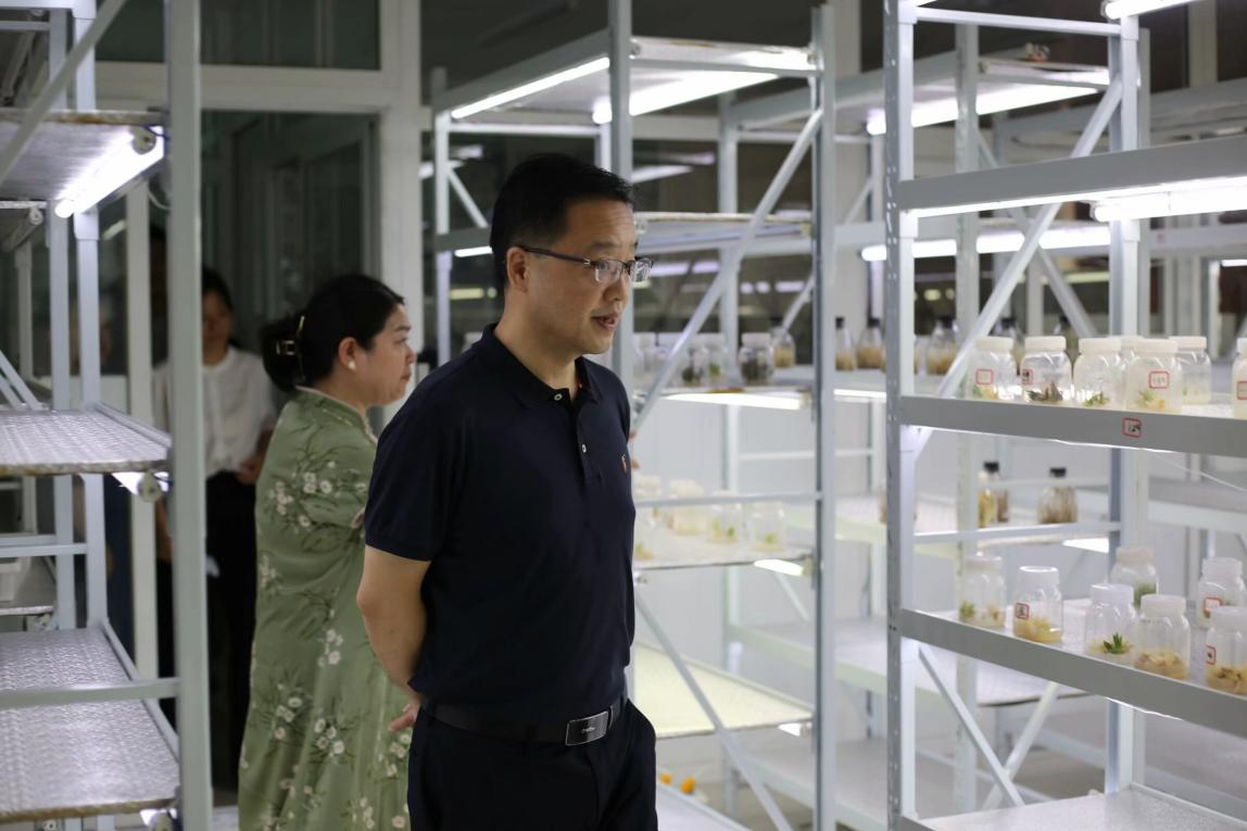 王志鹏一行首先来到学院的产教融合现场实践教学大厅,徐礼英汇报了学院产业教授参与实际教学的情况,以及学院发挥专业优势和智力优势,依托立项的省级科技特派团,服务乡村振兴的具体举措。随后,王志鹏一行参观了学院分子实训室、无人机以及组培等实训室。园林园艺学院分子实验室是学院首个博士实验室,依托现代农业应用技术协同创新,对水稻、玉米等农作物种子进行检测。无人机实训室每年承担植保无人机培训,暑期“三下乡”服务周边农业大户,助力乡村振兴建设。