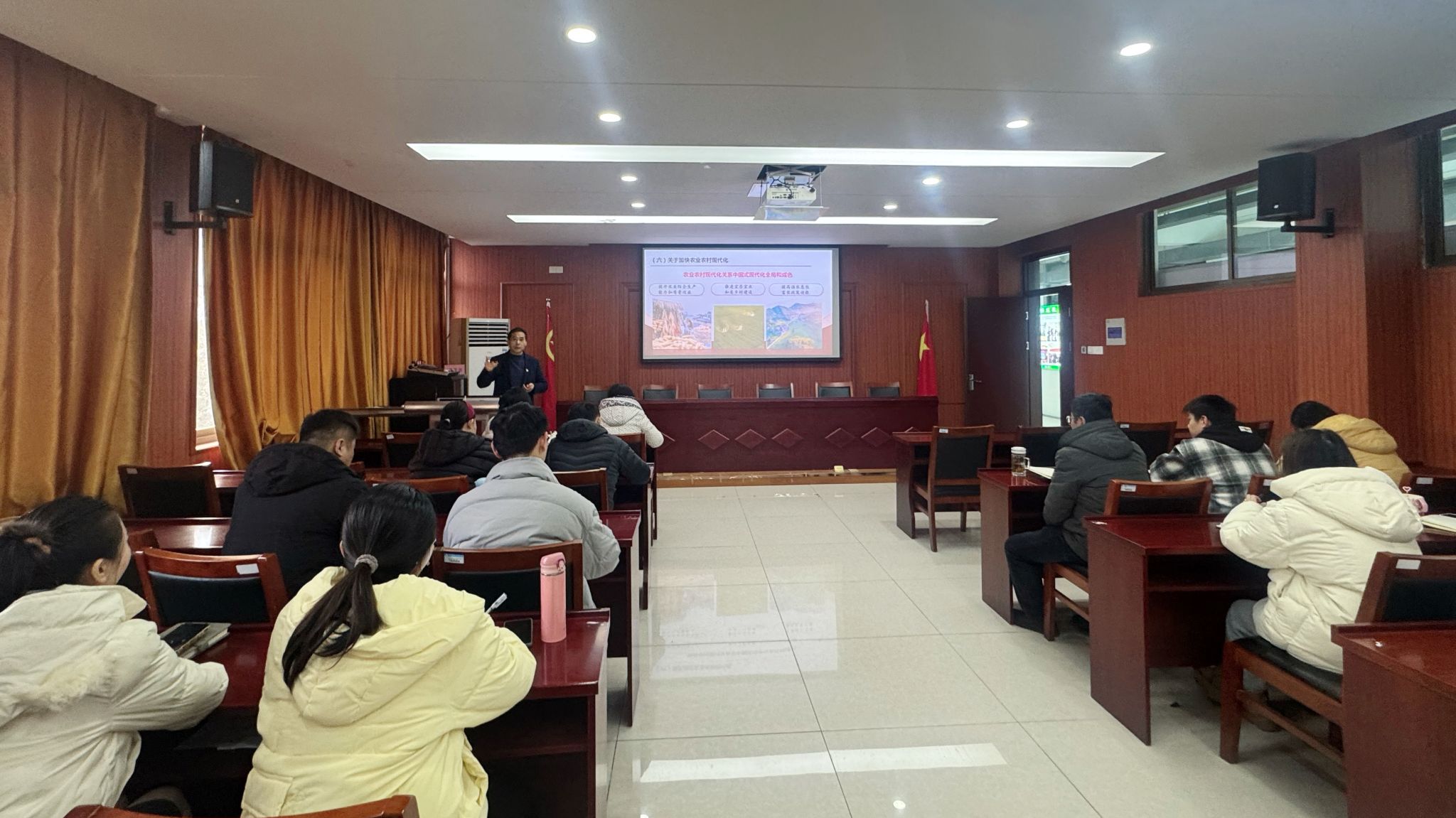 12月25日,校领导朱志国到园林园艺学院宣讲党的二十届四中全会精神宣讲会,园林园艺学院全体党员教师参会,学院党总支副书记章素华主持会议。