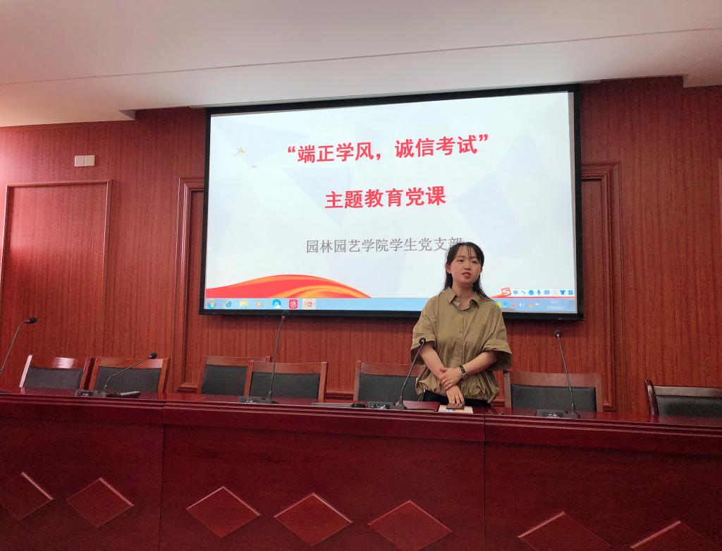 为贯彻《安徽省教育厅关于开展2021年考试诚信教育的通知》文件精神,落实立德树人根本任务,培养和提升学生诚信意识和规则意识,形成诚实守信,遵守规则的校园氛围,围绕学校和学院诚信教育工作的推进和部署,2021年6月4日下午,园林园艺学院学生党支部书记王静老师面向2019级入党积极分子开展了“端正学风,诚信考试”专题党课教育。